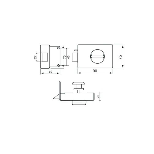Габариты корпуса замка 90х75х25 мм.