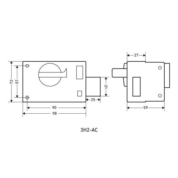 габаритные размеры длина корпуса max 135 мм, ширина max 100 мм, высота max 102 мм, вылет засова не менее 25 мм.