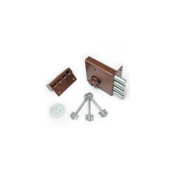 Комплектация замка ЗН-4-1П: накладка оцинкованная, запорная коробка, комплект ключей (3 шт.), паспорт дверного замка.