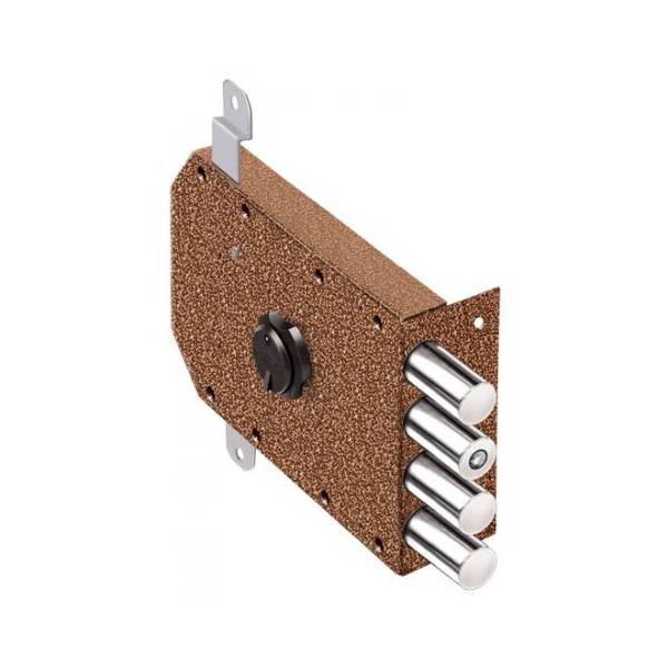 При полном вылете стержней на 40 мм в корпусе дверного замка остается 30 мм, что исключает возможность "изгиба" засова при попытке силового вскрытия двери.