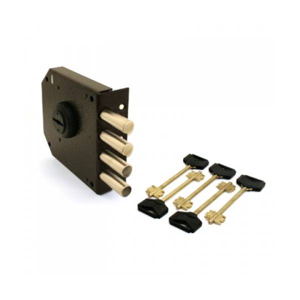засов из четырех цилиндрических ригелей диаметром 14 мм,