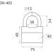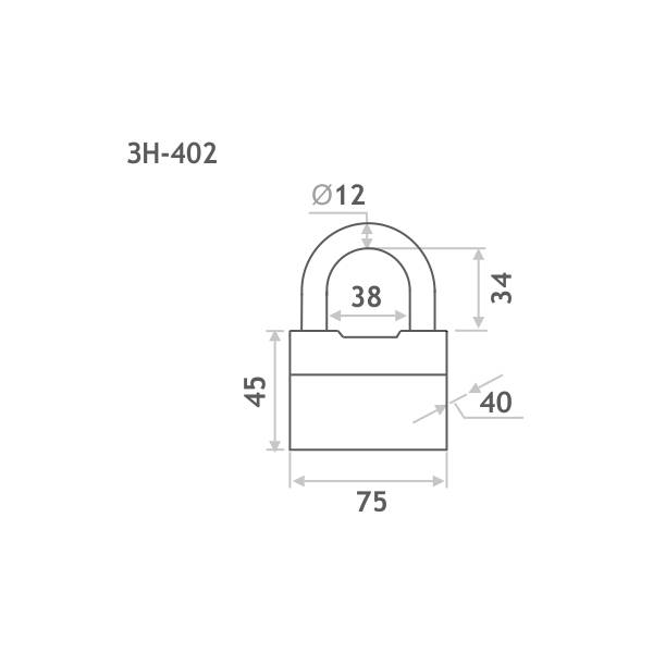 Технические характеристики ЗН-402 Нора-М: Ширина корпуса замка 75 мм, высота 45 мм, толщина 40 мм; высота дужки 34 мм, ширина дужки 38 мм, диаметр дужки 12 мм. Материал корпуса замка сталь; Количество ключей 3; Материал дужки Закаленная сталь; Материал ключа сталь; Покрытие гальваническое.