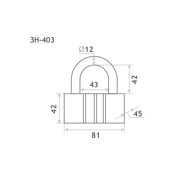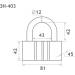 Замок навесной (замок-бочонок) ЗН-403 Нора-М является аналогом замков ВС2-21 ЧАЗ. Замок навесной ЗН-403 Нора-М оснащен дужкой из закаленной стали, имеется штамп HARDENED - закалено. Ширина корпуса замка 81 мм, общая высота замка 96 мм, высота проема дужки 42 мм, ширина проема дужки 43 мм, диаметр дужки 12 мм (см. чертеж).