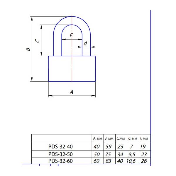 Замок висячий PDS-32-40 4 фин.кл. Апекс