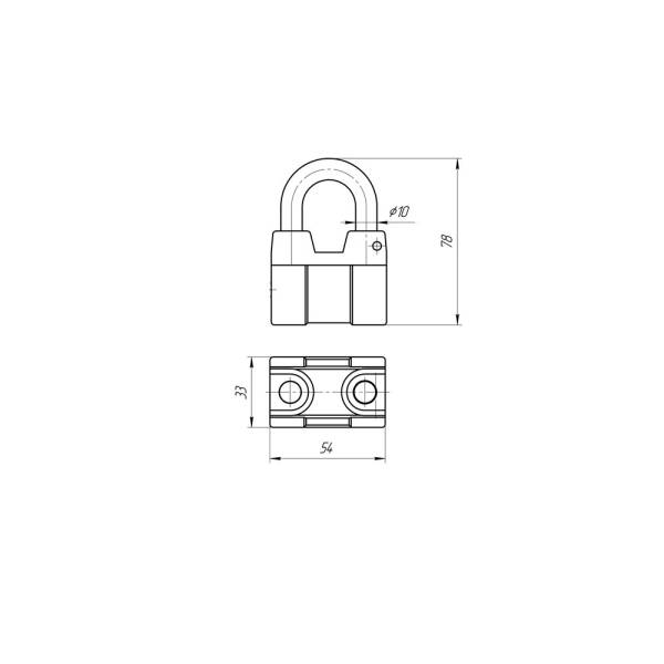 Корпус ВС4А выполнен из алюминиевого сплава. Материал дужки сталь, диаметр 10 мм. Механизм секрета - дисковый. Комплектуется 3-мя финскими ключами.