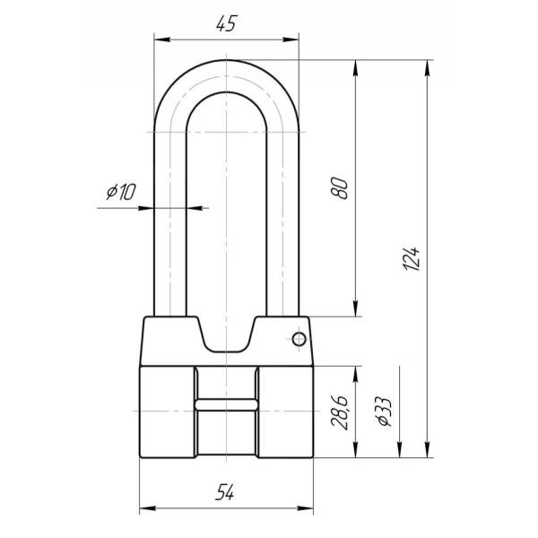 Корпус ВС4А выполнен из алюминиевого сплава. Материал дужки сталь, диаметр 10 мм. Механизм секрета - дисковый. Комплектуется 3-мя финскими ключами.