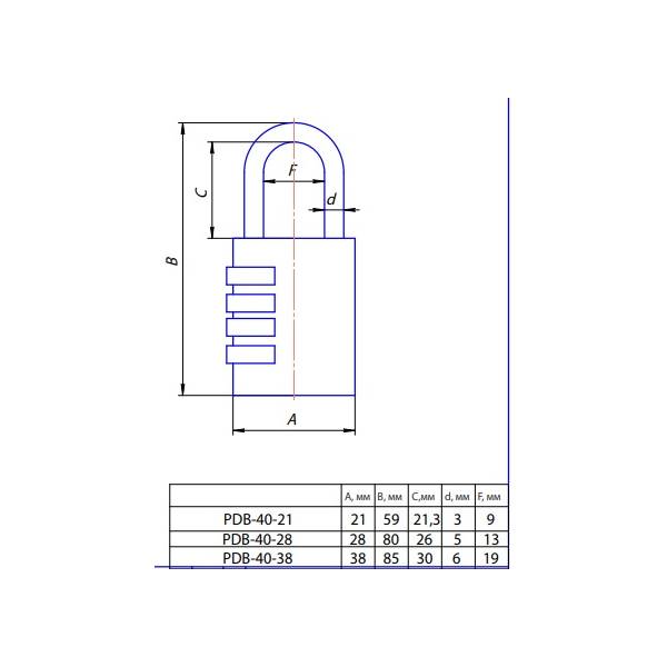 Замок висячий PDB-40-21-CODE Апекс