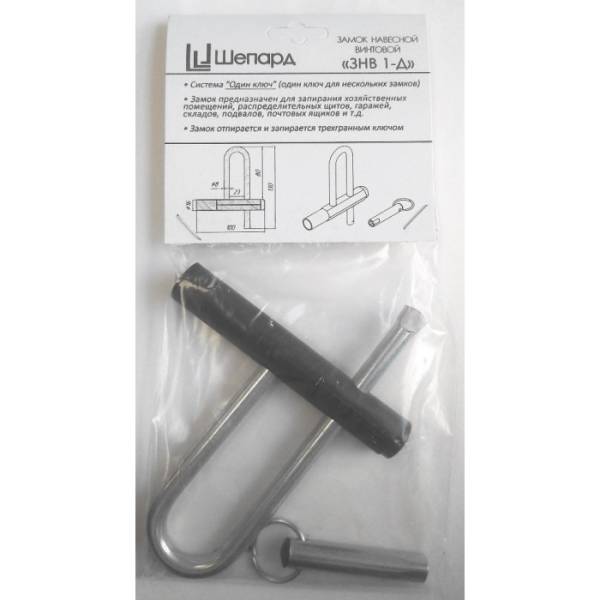 Замок навесной винтовой ЗНВ 1-Д (с одной секретностью, трёхгранный ключ). Производитель: Шепард, Санкт-Петербург.