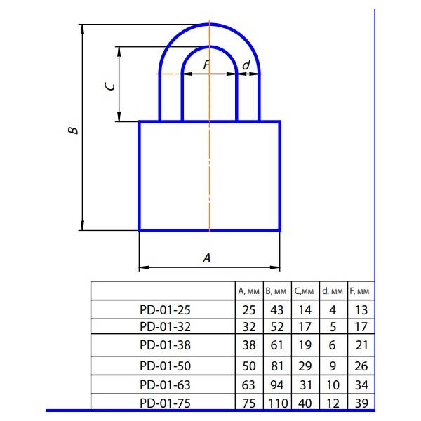 Замок висячий PD-01-75 чугун 3 англ.кл. Апекс