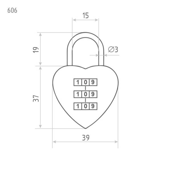 Замок запирается и отпирается цифровой комбинацией. Модель 606 имеет трехзначный код.