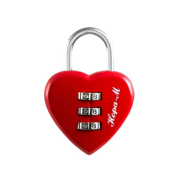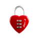 Навесной кодовый замок 606 Нора-М для запирания дорожных сумок и чемоданов, красный замок-сердечко.