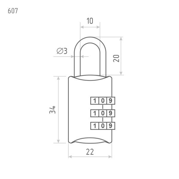 Замок запирается и отпирается цифровой комбинацией. Модель 607 имеет трехзначный код.