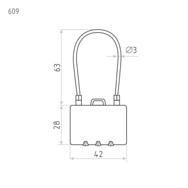 Замок запирается и отпирается цифровой комбинацией. Модель 609 имеет трехзначный код.
