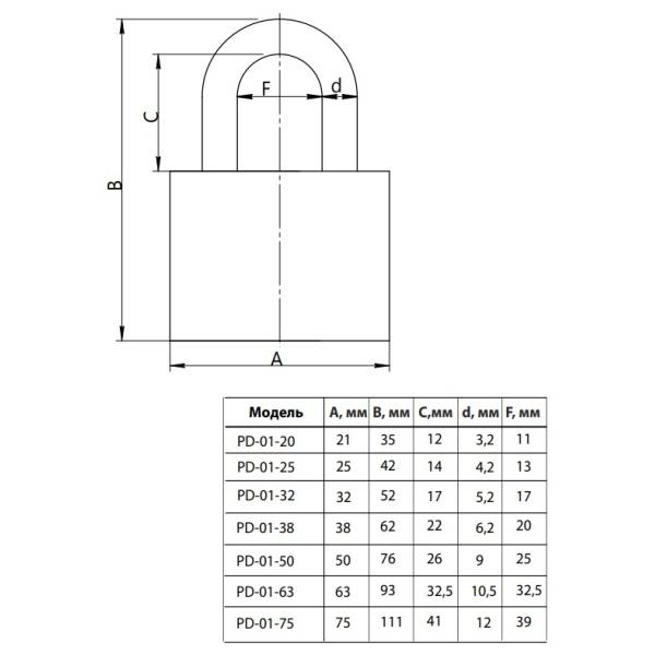 Замок висячий PD-01-20 чугун 2 англ.кл. Апекс