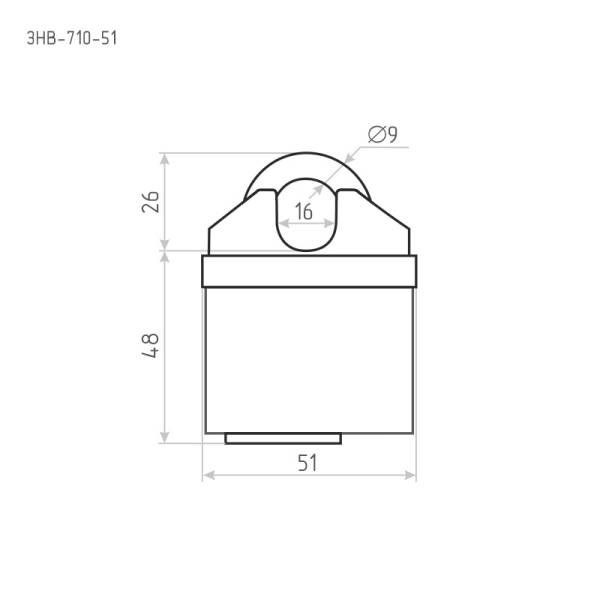 Высота дужки 26 мм, ширина проема дужки 16 мм, диаметр дужки 9 мм.
