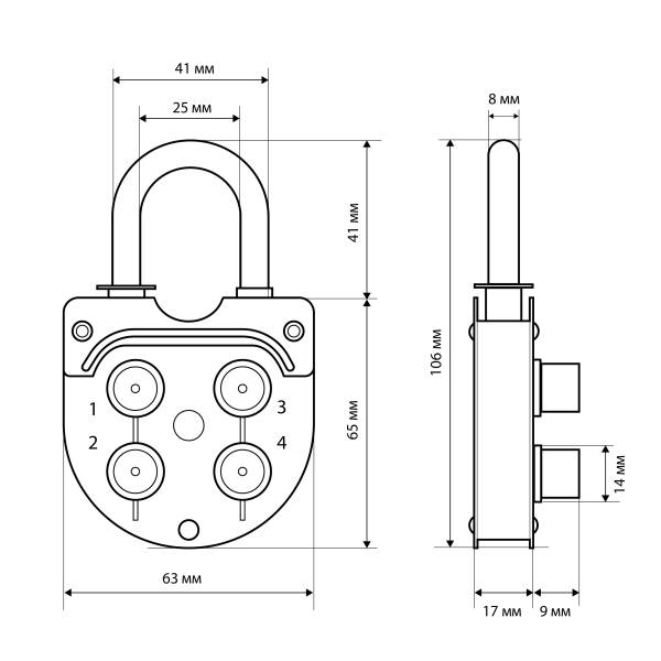 Навесной замок ВС2-6К кодовый дужка d 8 мм Стандарт