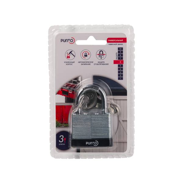 Замок навесной PUNTO PK-6540 3 английских ключа ширина корпуса 40 мм