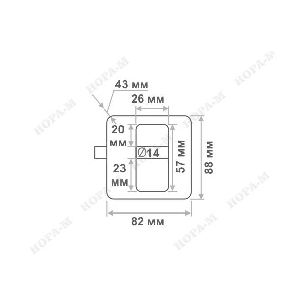 Габариты замка ЗН 404-90: ширина корпуса 82 мм, высота 88 мм, диаметр дужки 14 мм (см. чертеж).