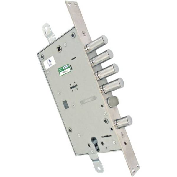 Бэксет (удаление ключевого отверстия) 63 мм; Межосевое расстояние 85 мм; Вылет ригеля 36 мм; Количество ригелей 5; Диаметр ригеля 18 мм;