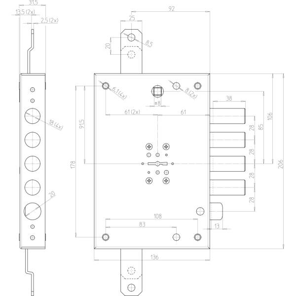 Универсальная защелка, управляемая ключом и дверной ручкой. Устойчивость к силовому воздействию.