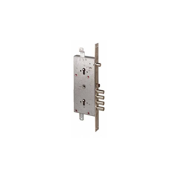 CISA 56.786.48 - Корпус врезного замка двухцилиндрового, изготовлен из высокопрочной оцинкованной стали. Верхний цилиндровый замок является дополнительним и закрывается на два оборота ключа, нижний на четыре оборота. Имеется реверсивная защелка из никелированной стали и отверстия под стяжные винты. Рекомендуется устанавливать цилиндровые механизмы разных серий, это повысит эффективность защиты вашего дома от недоброжелателей. Cisa (Италия) - один из флагманов мирового производства замков и синоним качества и надёжности. Бэксет (удаление ключевого отверстия) 64 мм; Вылет ригеля 38 мм; Диаметр ригеля 18 мм; Количество ригелей 5; Межосевое расстояние 85 мм; Наличие выводов для тяг; Наличие лицевой планки; Тип замка - основной с защелкой под ручку; Тип защелки риверсивная; Тип механизма секретности двухцилиндровый; Цвет хром.