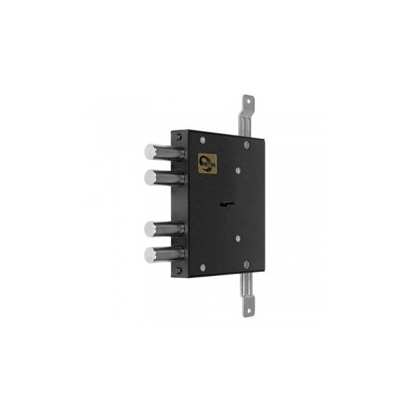 Корпус ЗВ8 151.1.0 запирает дверь четырьмя стальными ригелями диаметром 16 мм, ригели выдвигаются из корпуса на 40 мм. В одном из ригелей расположен закаленный стальной стержень, который обеспечивает надежную защиту от перепиливания. Меттэм 8 151.1.0 запирает дверь на четыре полных оборота, также возможно неполное запирание двери на два оборота. Вертикальные тяги обеспечивают дополнительное запирание двери в направлении вверх-вниз.