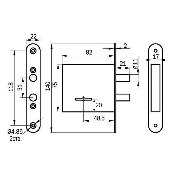 Просам 76610 имеет 100 неповторяющихся вариантов ключей, открывается и закрывается изнутри и снаружи ключом, выпускается с засовом из двух штырей круглого сечения.