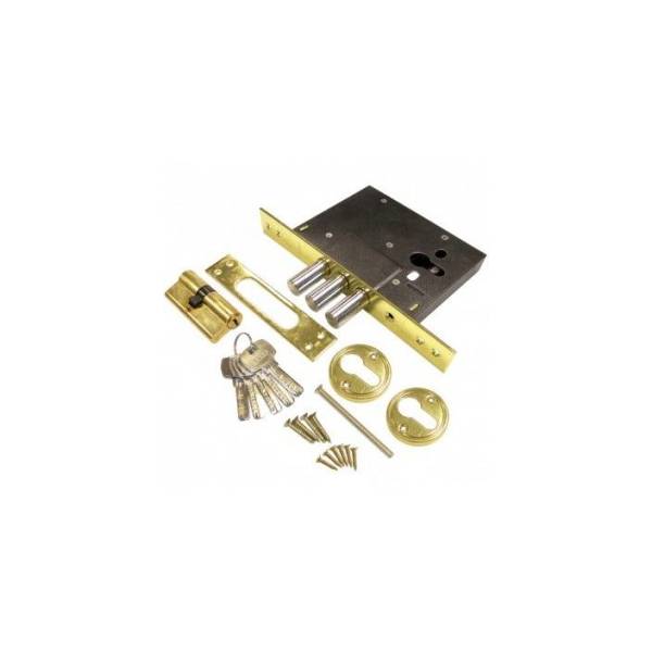 Замок врезной Сазар 960-3R РВ цилиндровый, без ручек, трехригельный. Цвет золото. Тип дверного замка - врезной. Класс защиты 3.