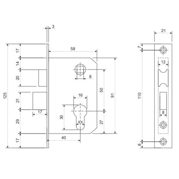 Комплектация: корпус замка, ручки на планке, квадрат, крепеж, цилиндровый механизм 60 мм, ответная планка.