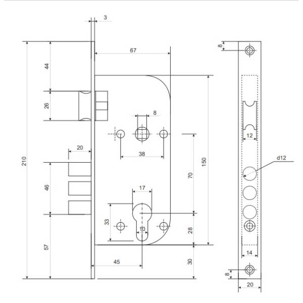 Технические характеристики: Удаление ключевого отверстия (Backset) 45 мм; Межосевое расстояние 70 мм;
