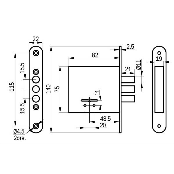 Замок дверной ЗВ8-8У выпускается в двух исполнениях: с прямоугольным засовом ЗВ8-8У/0 и с засовом из трех стержней круглого сечения ЗВ8-8У/1. Покрытие корпуса замок цинковое. Покрытие лицевой планки никелевое.