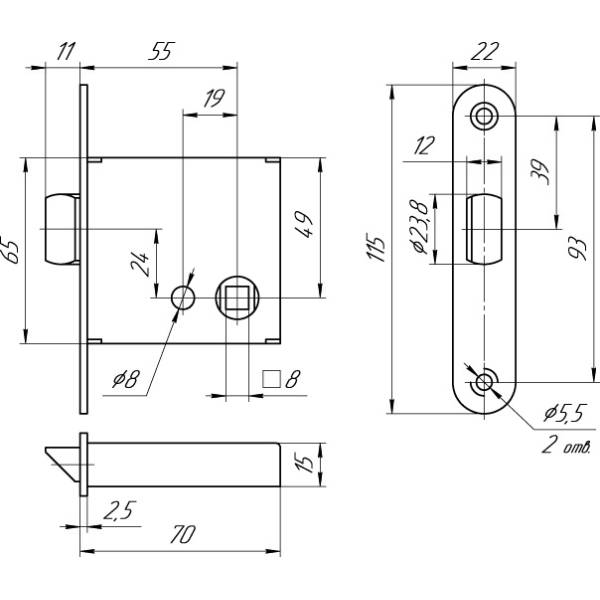 Защелка врезная ЗЩ 1-3 Меттэм (20)