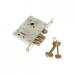 Комплектуется 3/5 стальными ключами. Покрытие корпуса замка цинковое. Покрытие лицевой и ответной планок никелевое.