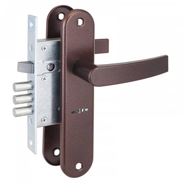 Корпус замка 6-сувальдный с защелкой и фалевыми ручками.