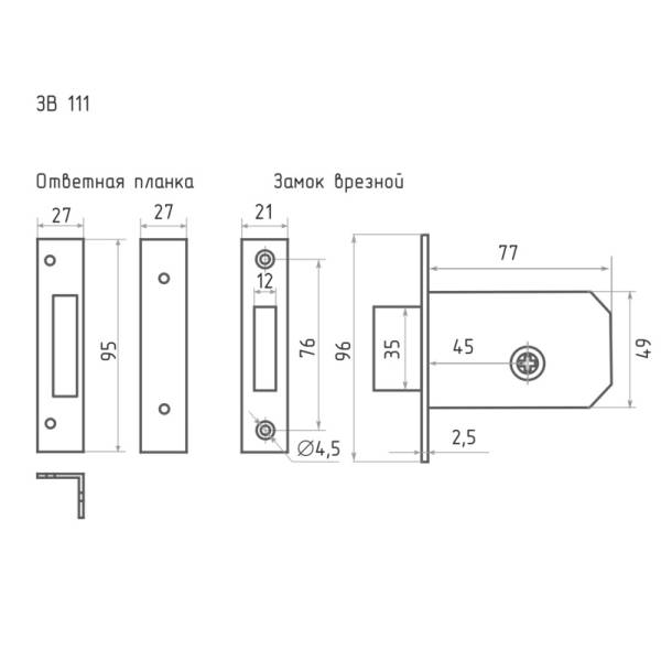 ЗАМОК ВРЕЗНОЙ МОДЕЛЬ ЗВ-111 НОРА-М, Россия-Испания. Технические характеристики ЗВ-111 Нора-М: Модификация встроенный цилиндр под крестовой ключ; Запорные элементы ригель; Количество ригелей 1; Сечение ригеля - прямоугольный; Материал корпуса - оцинкованная сталь. Замок ЗВ-111 Нора-М - универсальный, т.е. подходят как под правое, так и под левое открывание двери. ЗВ-111 Нора-М для установки на межкомнатные входные и деревянные двери. Корпуса замков торговой марки Нора-М изготовлены из стали и покрыты порошковой краской для дополнительной защиты от коррозии. Все корпуса замков, изготовленные под торговой маркой "Нора-М", относятся к первому классу стойкости ко взлому, и поэтому не требуют обязательной сертификации.