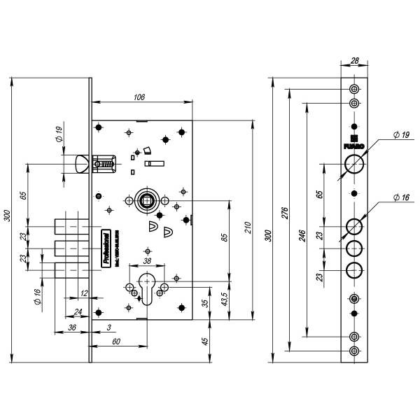 Цилиндровый врезной замок Fuaro V25/С-60.85.3R16 является аналогом ЗВ 252R сувальдного Кале.