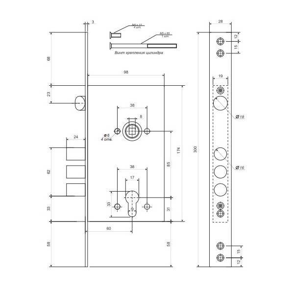 Замок врезной ЗВ PREMIER T-52-CR под МЦ Апекс (10)