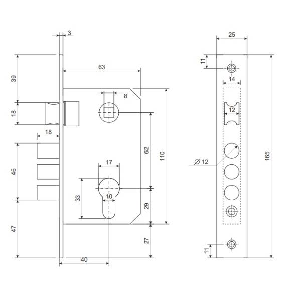 диаметр ригеля 12 мм;
