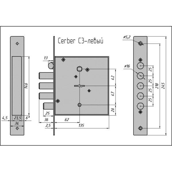 Замок врезной ЗВ C3 014 левый (З ригеля, защелка, задвижка) Цербер (10)