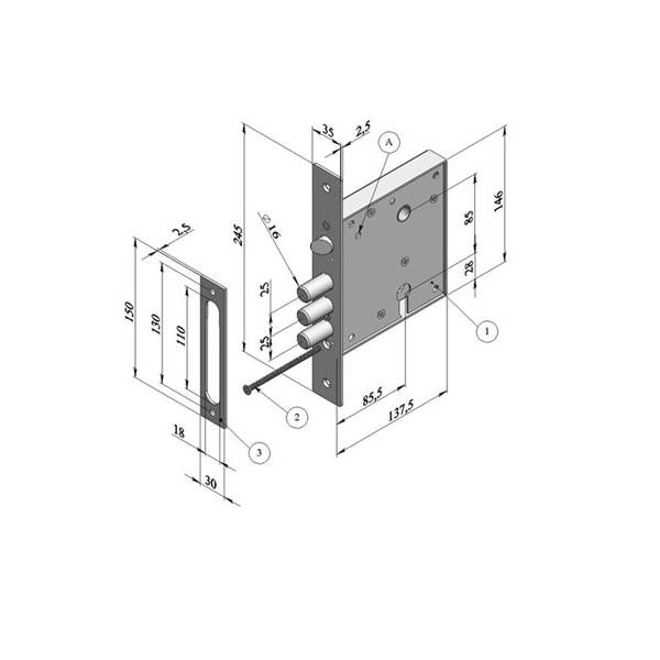 Удаление ключевого 87,5 мм, Маскимальный вылет засова 40 мм., 4 стальных ригеля диаметром 16мм из калиброванной стали.