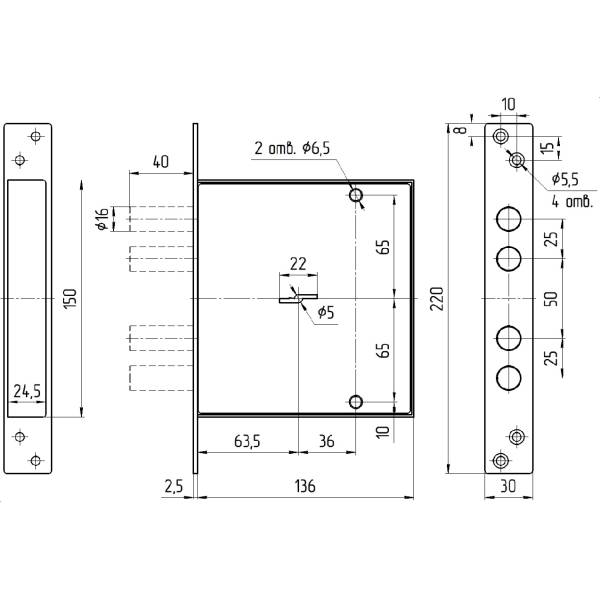 ЗВ8 165.0.0 рекомендуется для установки в качестве дополнительного запирающего устройства во входные двери всех типов, защелка отсутствует.