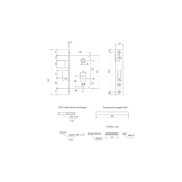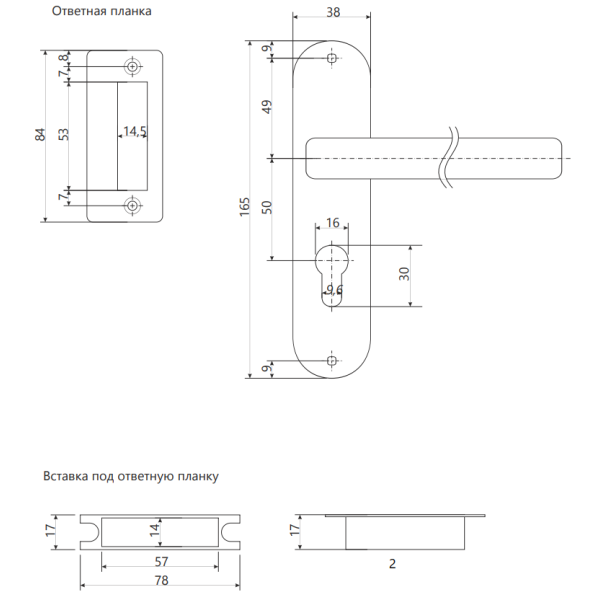 Комплект врезного замка с ручками и цилиндровым механизмом предназначен для установки в деревянные двери толщиной до 40 мм.