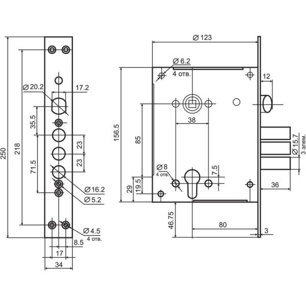 Бэксет или удаление ключевого отверстия 80 мм.