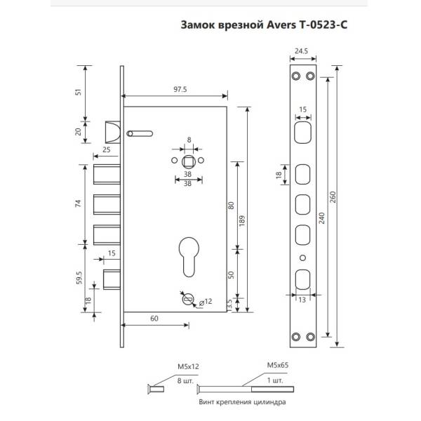 Врезной замок T-0523 Аверс рекомендован для установки в бронированные металлические двери.