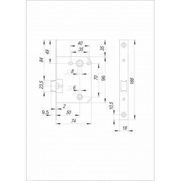 ригель один, прямоугольный, вылет ригеля 13 мм,