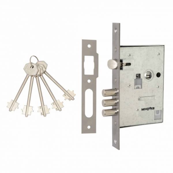 Замок сувальдный VЕTTORE 008 CP (Хром) с сувальдным механизмом секретности и защелкой. Комплектуется ключами.