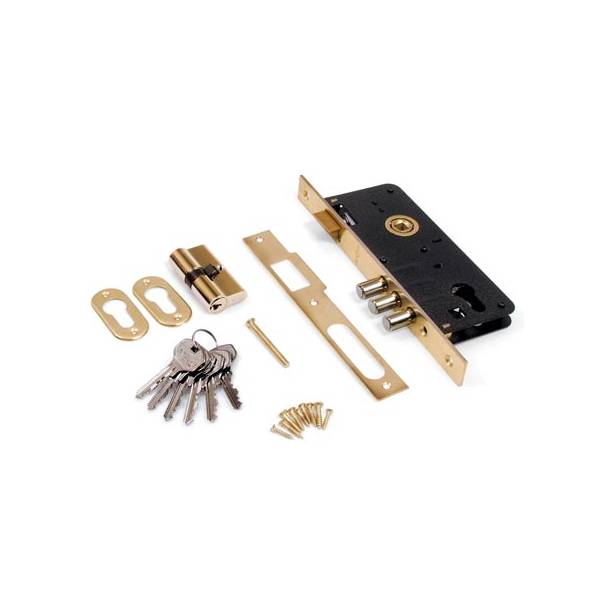 Врезной замок 2200/60-G Apecs без ручек с тремя ригелями и защелкой для во входных и межкомнатных дверей.