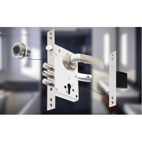 Замок врезной CRIT электромеханический биометрический комплект корпус + ручки + биометрический датчик открывание отпечатком пальца.