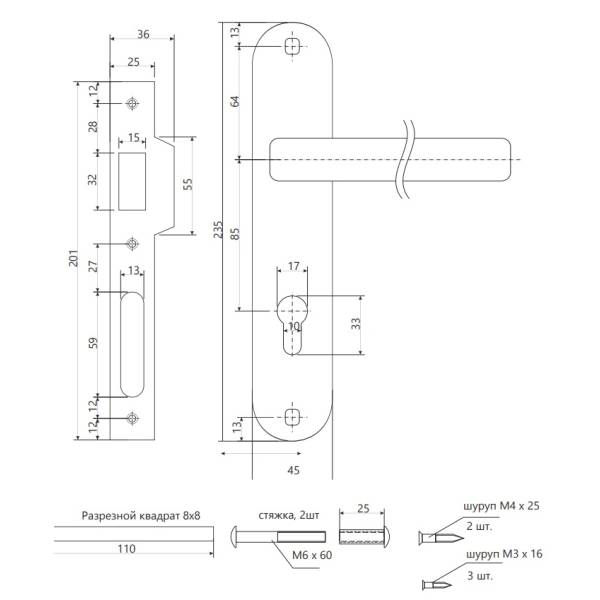 Замок в сборе рекомендован для установки во входные двери или в межкомнатные двери;