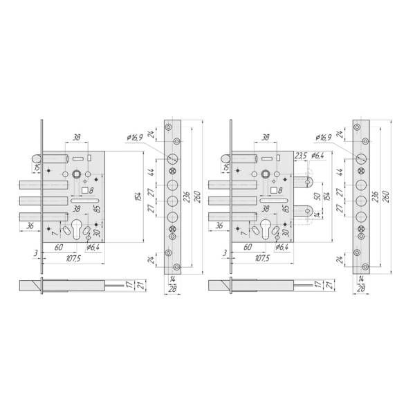 7РМ - Серия - Замки с засовом и фалевой защелкой